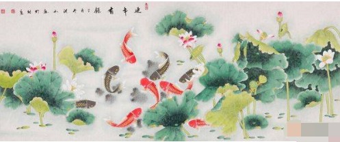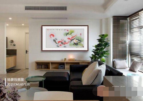花鸟怡情,通常是富贵繁华、清新雅然的代表,选择适合的挂画,点缀的不仅是客厅的环境,更影响着客厅的风水,有些能祈福纳瑞,有些能招财进宝。而说到招财挂画,国画九鱼图便是古今人们喜闻乐见的招财画,无论是进门玄关、客厅背景墙,还是餐桌旁、卧室床头,都可以悬挂一幅众鱼戏水九鱼图。