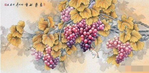 客厅背景墙挂画---花鸟画系列三:丰收硕果葡萄图