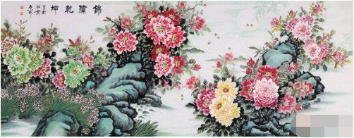 石开八尺横幅牡丹画佳作《锦绣乾坤》作品来源:易从网