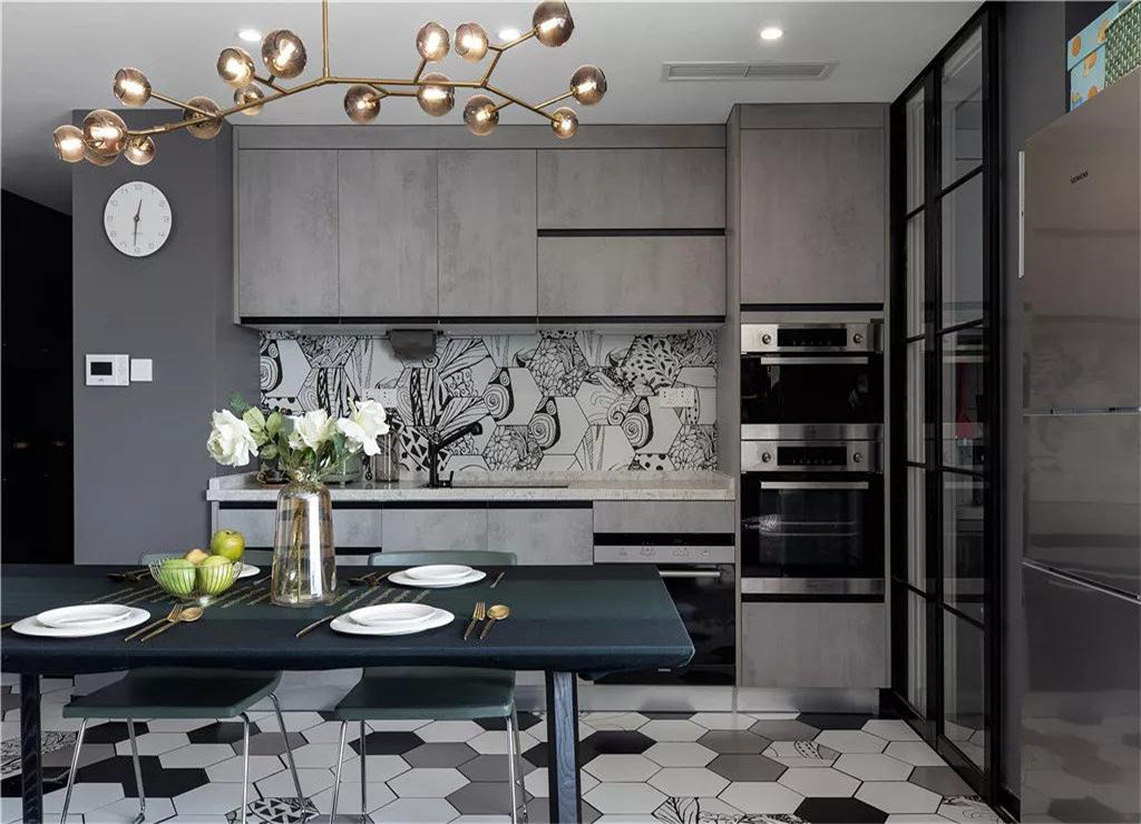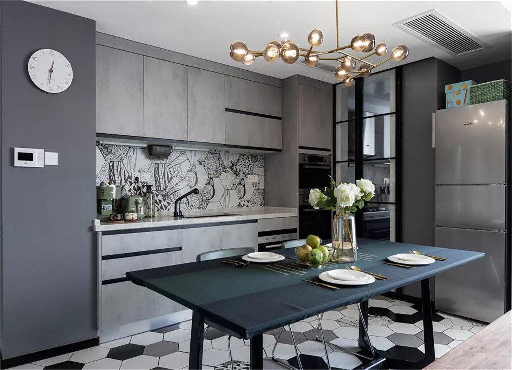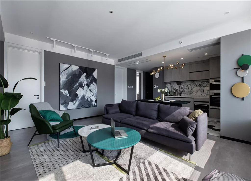 这一套建筑面积131平的现代三居室案例,房子的主要配色以黑白灰为主,在软装细节处也加入了一些孔雀绿、复古木色等其他颜色作为点缀,让这个家看起来更有格调一些,这种轻奢范的设计也的确让人感觉非常好看。采用几何线条装饰,颜色简洁明快,外观简洁流畅,多以波浪或架廊式挑板等不同形状的屋顶为特点,立面立体层次感较强,体现时代特征为主,没有过分的装饰,一切从功能出发,讲究造型比例适度、空间结构图明确美观,强调外观的明快、简洁。