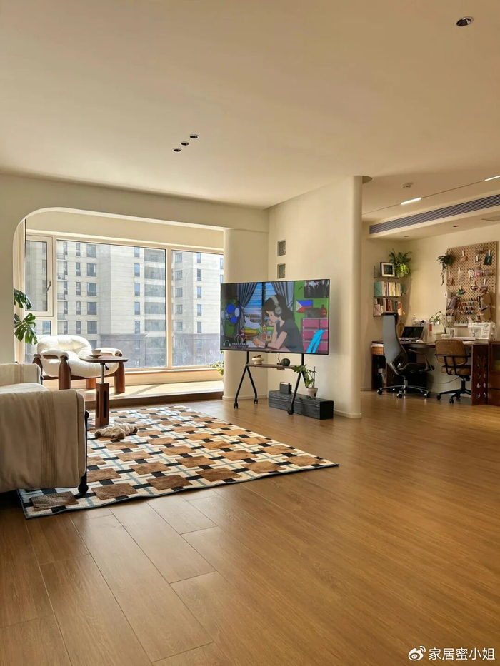 装修最正确的决定,就是电视墙啥也没做,直接大白墙挂电视机,再搭配一组电视柜,空间视觉直接放大1.5倍,并且刚好可以把省下的背景墙预算,换一台大电视。